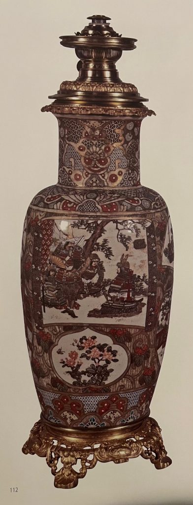 The handles are adorned with “shi-shi” (Chinese lion) figures, further emphasizing the hybrid aesthetic that combines Japanese decorative vocabulary with foreign formal influences.