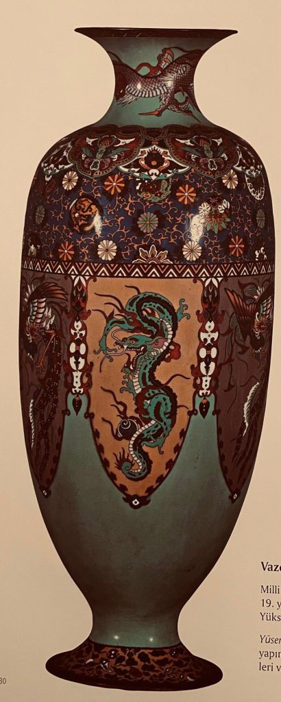 Japonisme in the Ottoman Empire was not limited to imported works but also influenced local artistic production. A vase decorated with carp (koi) motifs, produced at the Yıldız Porcelain Factory, stands out as one of the most striking examples of the interaction between Ottoman art and Japanese aesthetics in the nineteenth century. Likewise, Japanese-style furniture included in the National Palaces Collection from the 1880s onward demonstrates how Japonisme permeated Ottoman palace life.