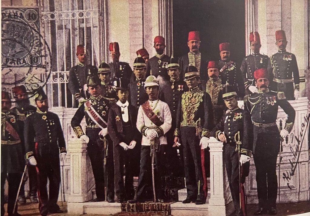 During this visit, the Prince was accommodated at the Mısır Hotel in Beyoğlu, and, as seen in the photograph, he was awarded an Ottoman Order, while the accompanying officers were presented with various decorations according to their respective ranks.