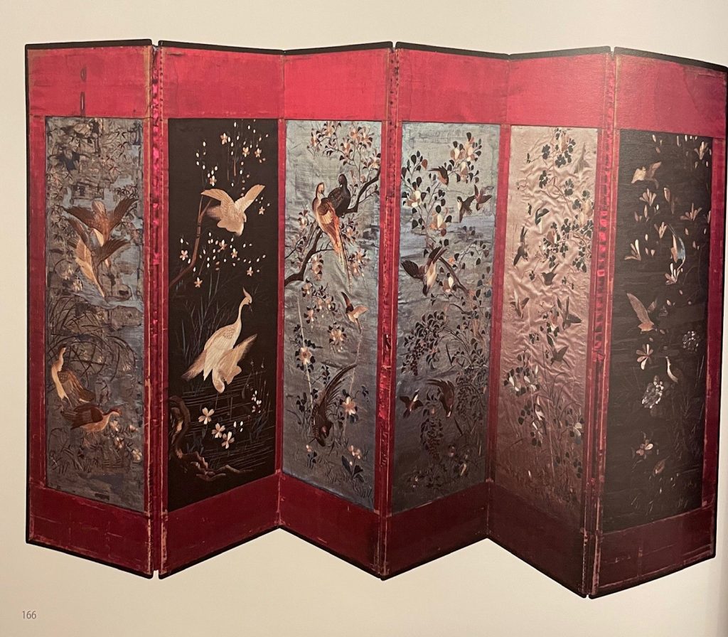 Saray koleksiyonundaki Japon tablo, paravana ve dolaplarda; turna kuşları, sakura ağacı, krizantem çiçekleri gibi ipek üzerine işlenmiş Osmanlı işleme sanatının en güzel örneklerinin yer aldığı koleksiyonda, Japon ustaların işleme eserlerde kullandıkları ipeğe işleme sanatı ile hayal dünyamızın iki var olan güzellikleri hangi coğrafyalarda olursa olsun ellerimizin ortaya çıkardıkları ile şekillenmekte ve insanoğlunun dış dünyasının zenginliği bu eserlerle görülebilmektedir.