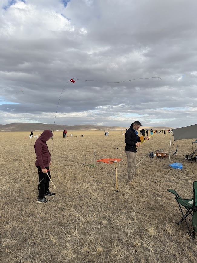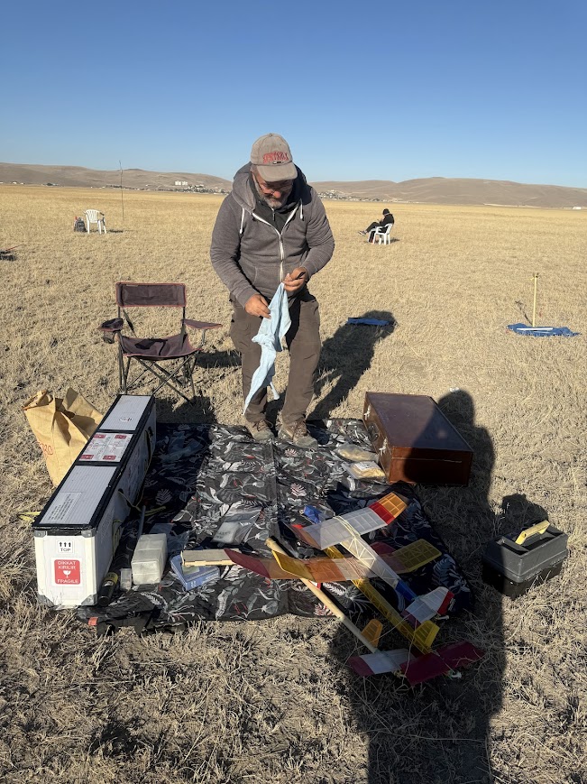 Sabah 07:30’da, 10 farklı kategoride yarışmalar başlıyor. Bizim izleyeceğimiz yarış 4-5 Ekim 2025 Türkiye Milli Model Serbest Uçuş Şampiyonası P-30 Genel ve Junior klasmanları. Model uçak tutkunu gençler ve büyükler bir arada. Anne babalar da kaynaşmak için bir fırsat buluyor. Hava güzel ama rüzgâr var.