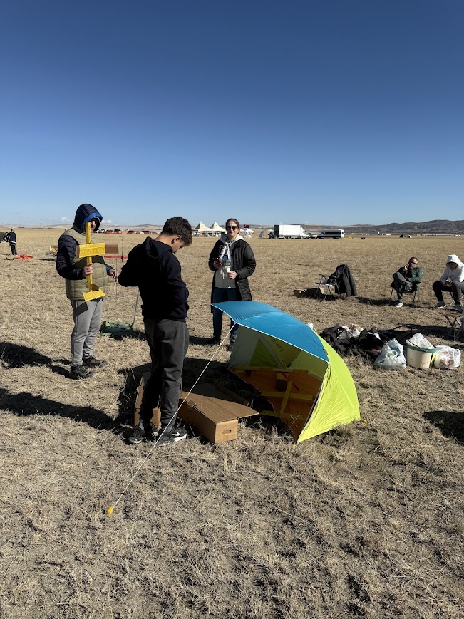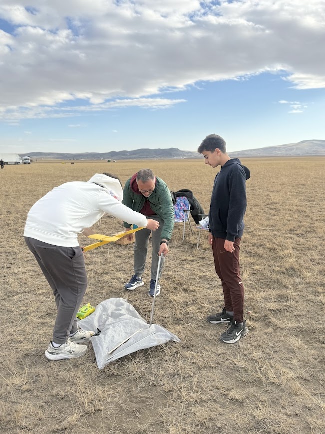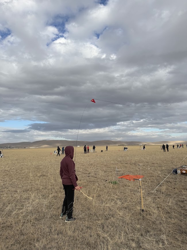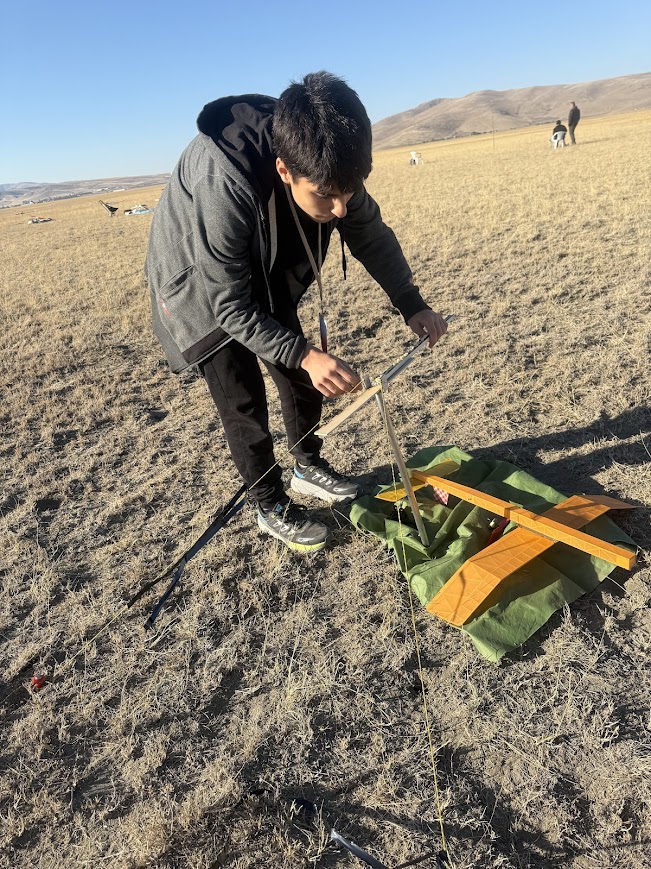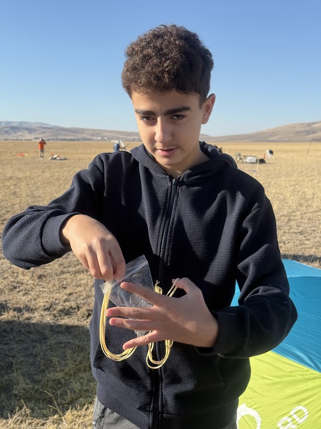 Irmak Peri, a 7th grader, tells us her model was swept away by the wind that morning. After searching the plain for a long time, she finally found it.