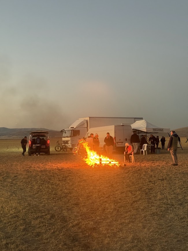 We’re heading to the Turkish National Free Flight Model Airplane Championship. The event is held near Gölbek Village in the Çöl Plain, just outside Ankara. It’s a little past six, right at sunrise… Over the plain near Haymana, the sky still feels asleep. The first thing breaking the silence is a small fire glowing like a pomegranate in the distance. Those arriving for the competition are heading toward it— for in the middle of the steppe, finding your way isn’t easy, and whoever spots the fire finds their direction.