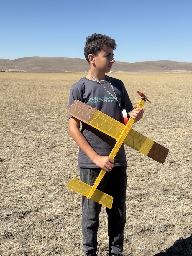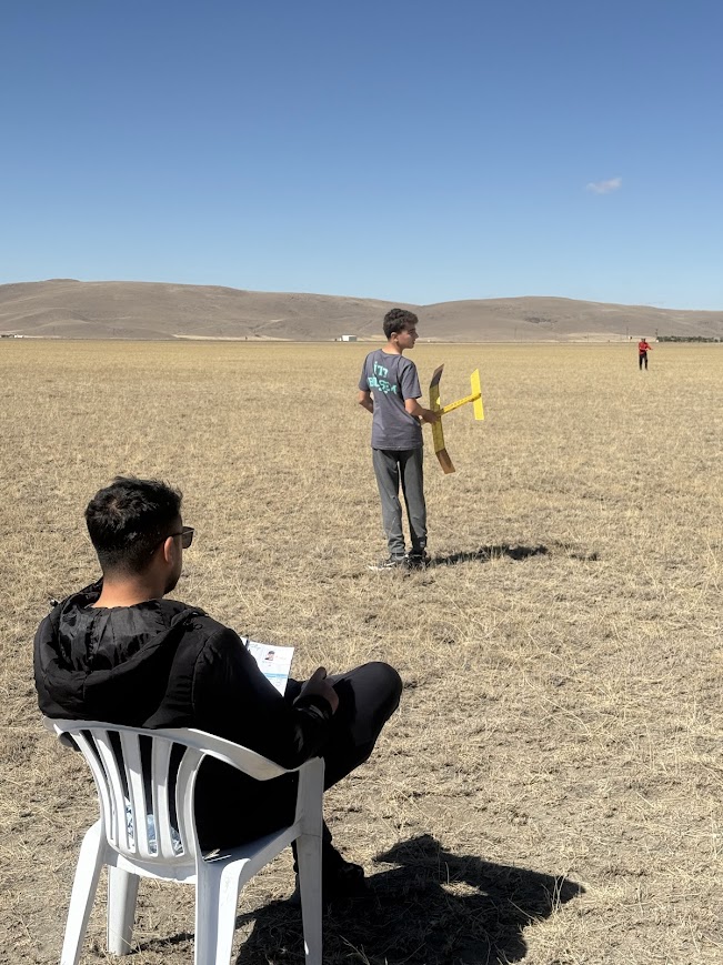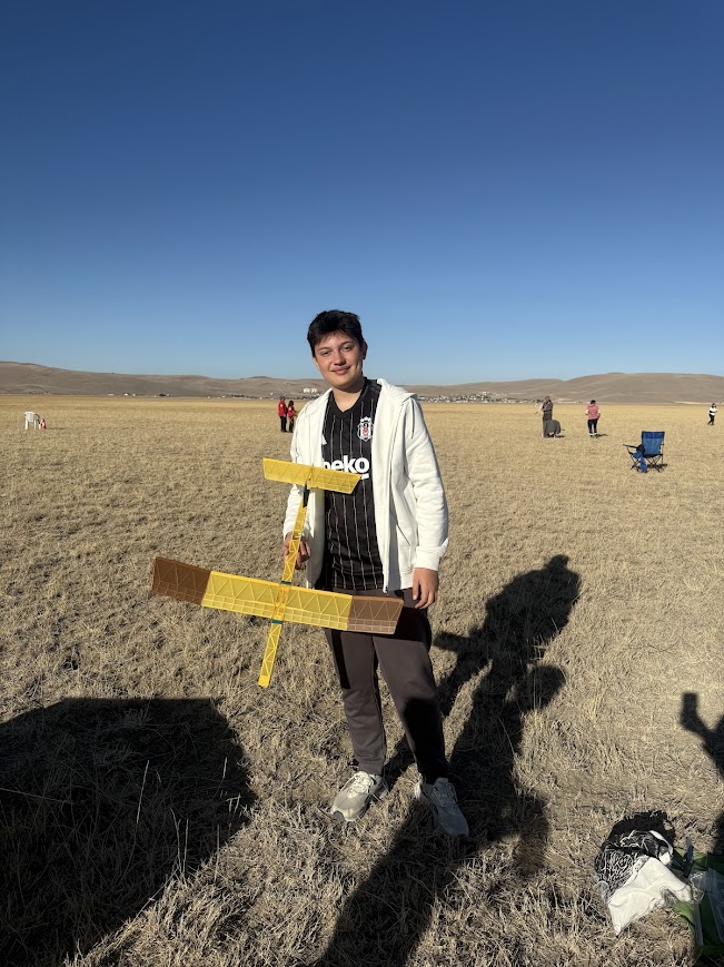 Mete Üstüntaş, a 9th grader, recalls the last competition: “My plane caught a thermal current. It was dancing in the sky, gliding silently.