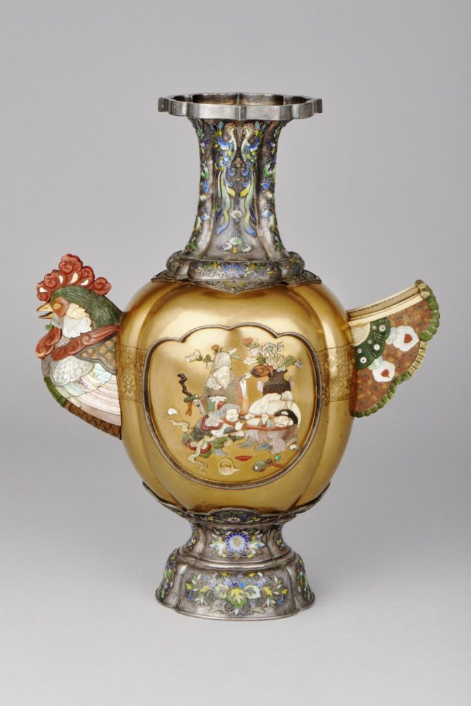 Some Japanese porcelains were modified by European artisans with gold or silver mounts to enhance their value and adapt them to Ottoman usage. Bottles were fitted with metal spouts to resemble ewers or pitchers; bowls received silver lids; and vases were placed on metal bases, resulting in hybrid objects that combined Japanese, European, and Ottoman aesthetics. Silver mounts bearing European hallmarks attest to their Western origin, while certain gilded silver fittings reflect the craftsmanship of Ottoman palace workshops.